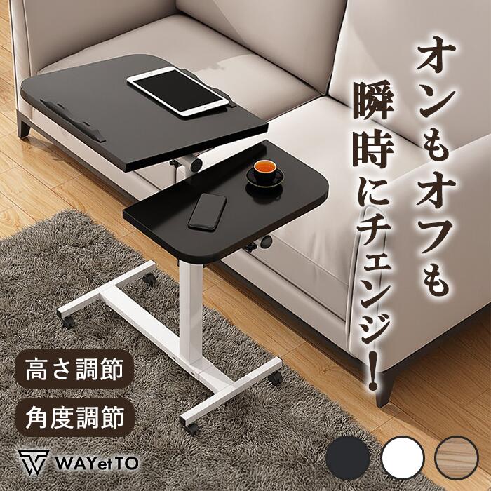 \先着順クーポン/サイドテーブル キャスター付き 昇降式テーブル 昇降式 テーブル おしゃれ デスク・・・