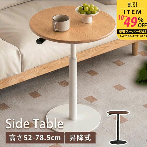 サイドテーブル 昇降式 丸 幅70cm 高さ調整 61-87cm 収納付き ソファーテーブル マルチ・・・