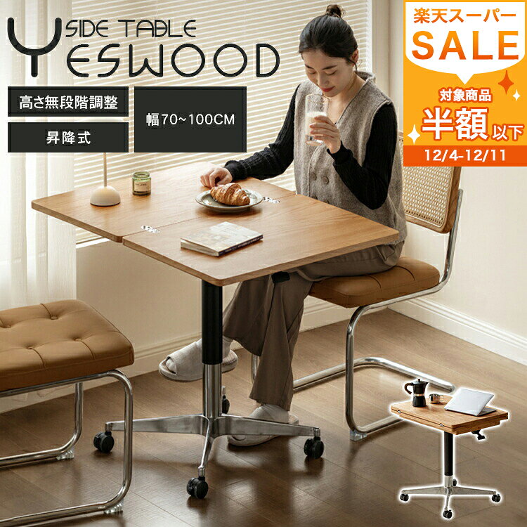 7%OFFクーポン★11/29~~12/1 昇降式テーブル キャスター付き サイドテーブル 幅60c・・・