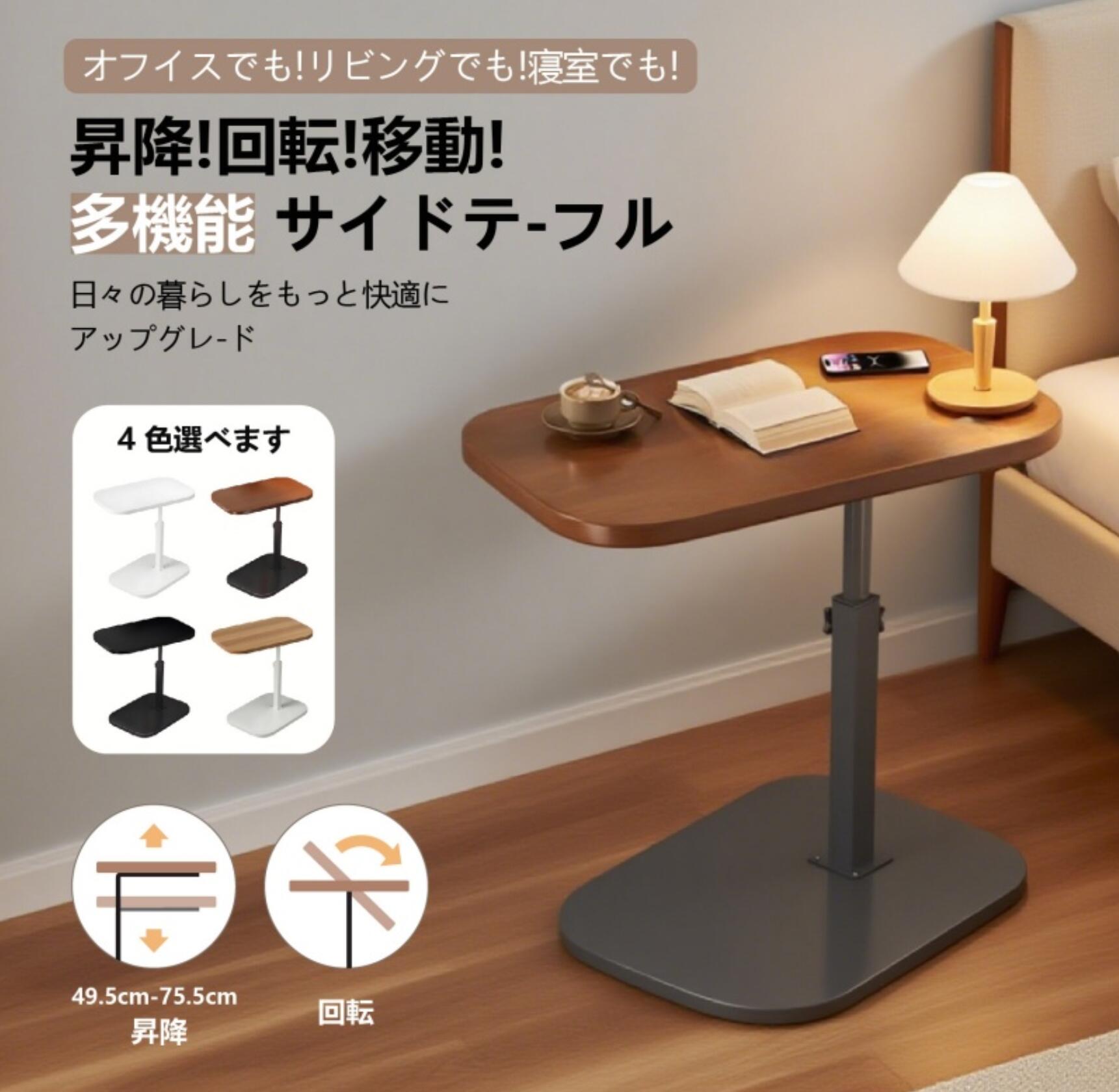 昇降サイドテーブル 小さめ サイドテーブル 高さ調節ベッドサイドテーブル 介護昇降式 デスク パソコ・・・