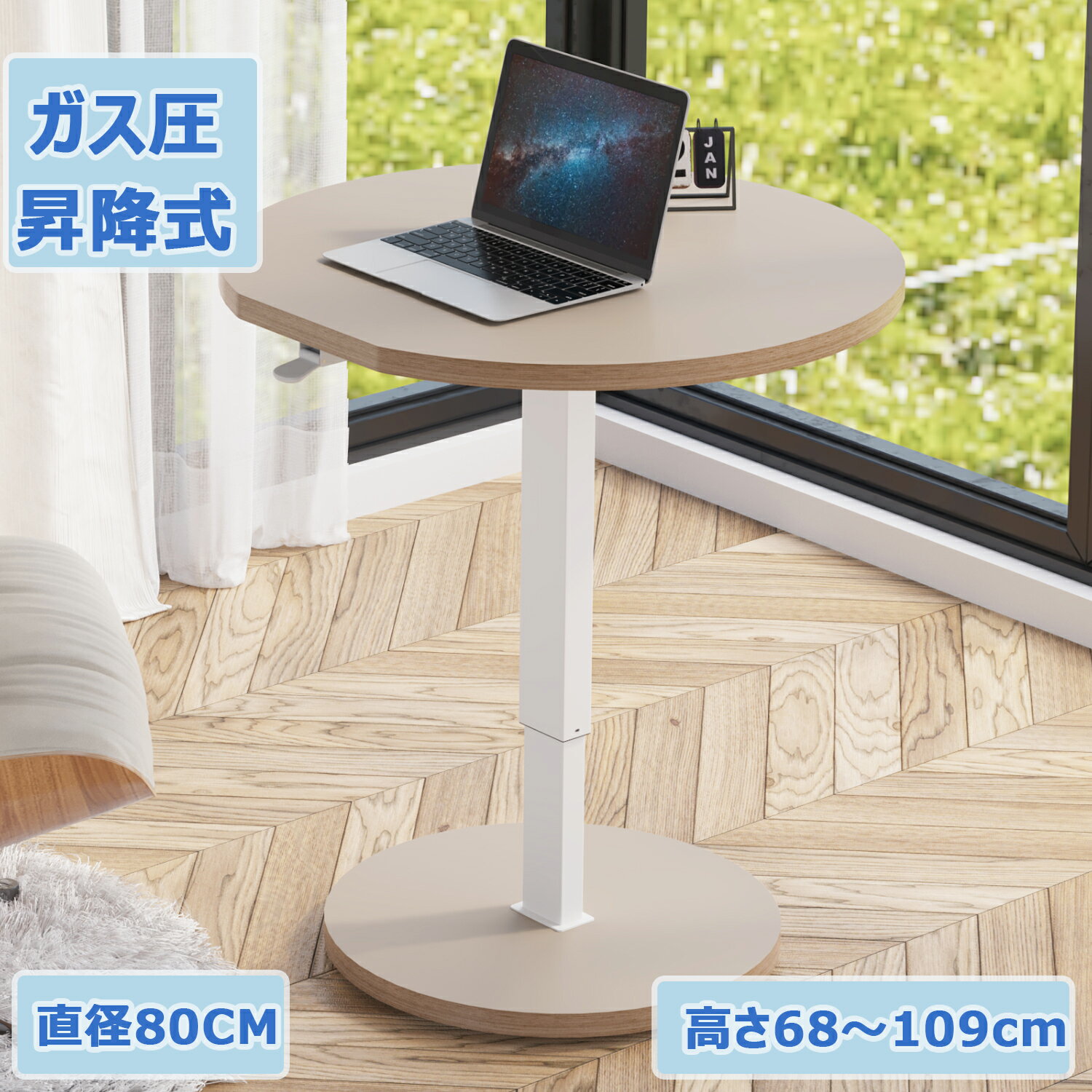 bilbil 昇降デスク 空気圧式 サイドテーブル 介護用ベッドテーブル 高さ調節可能 直径80cm・・・