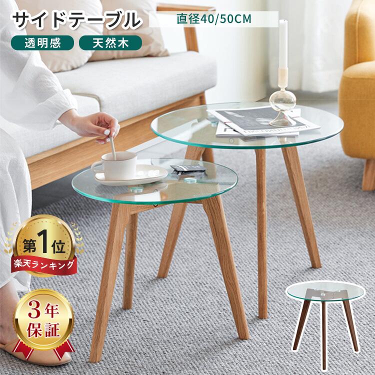 【楽天1位・3年保証】サイドテーブル ガラス 木製 丸い 幅40cm センターテーブル ローテーブル・・・