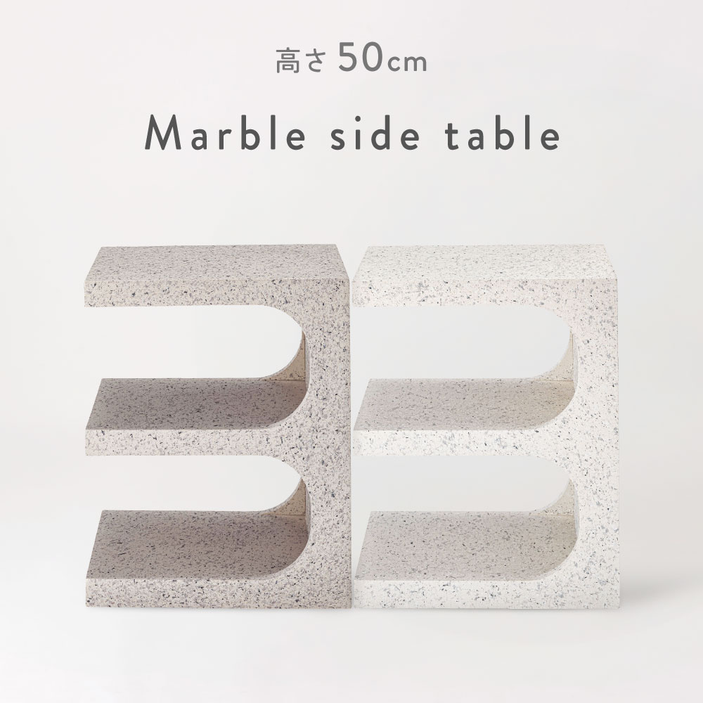 サイドテーブル おしゃれ 2WAY 収納 大理石風 棚付き 高さ50cm ナイトテーブル 机 縦横 ・・・