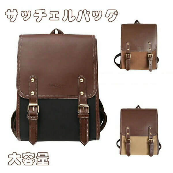 [] サッチェルバッグ リュック スクエア型 大容量 通学/通勤/デート用 男女兼用 キャンバス&;・・・