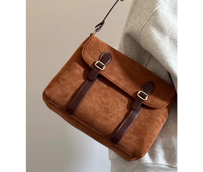 ショルダーバッグ レトロ スウェード風 サッチェルバッグ レディース こなれ感 茶色 バイカラー 学・・・