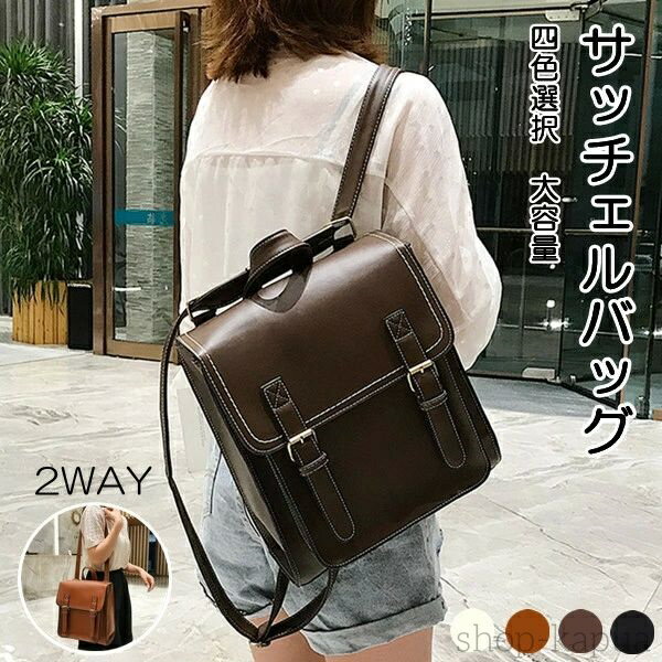 サッチェルバッグ レトロ レディース 4color 2way 革 鞄 ナップザック 大容量 サック ・・・