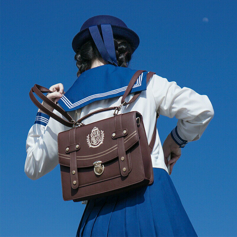 サッチェルバッグ ナップザック ショルダー カジュアル 手提げ イギリス風 ゴスロリ jk制服 軍服・・・