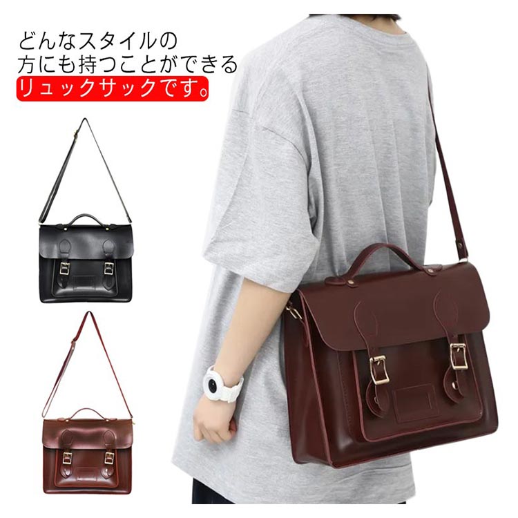 サッチェルバッグ ナップザック ショルダー カジュアル 手提げ イギリス風 3way 学生風 リュッ・・・