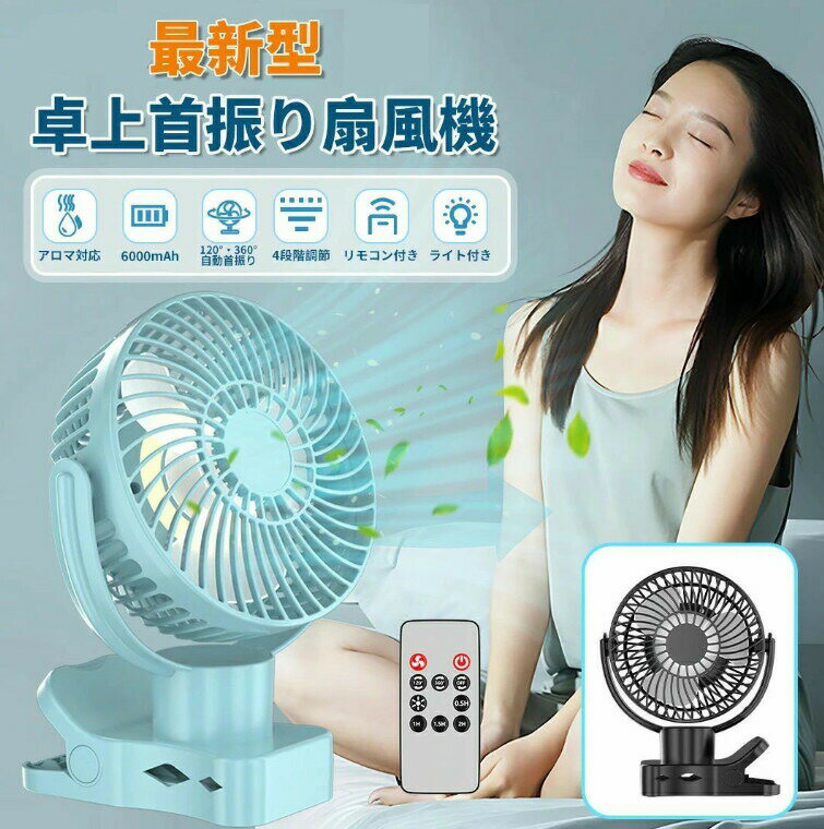 卓上 扇風機 クリップ 車用扇風機 サーキュレーター 首振り扇風機 リモコン付き アロマ対応 DCモ・・・