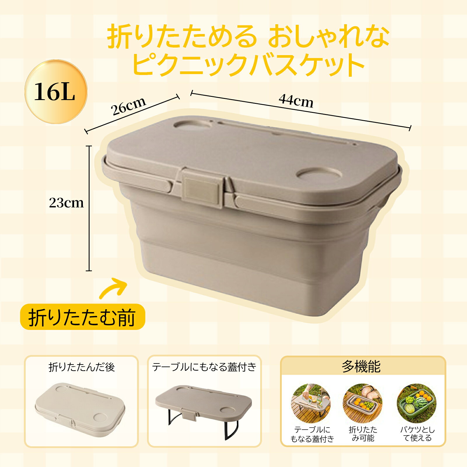 折りたたみバスケット フタ付き 約16L テーブル ピクニック 行楽 BBQ カー用品 レジャー用品・・・