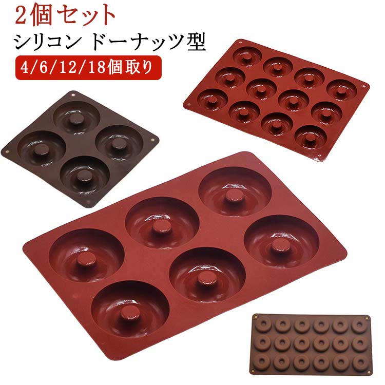 2個セット シリコン ドーナツ型 4/6/12/18個取り ケーキ型 製菓道具 シリコン製 オーブン・・・