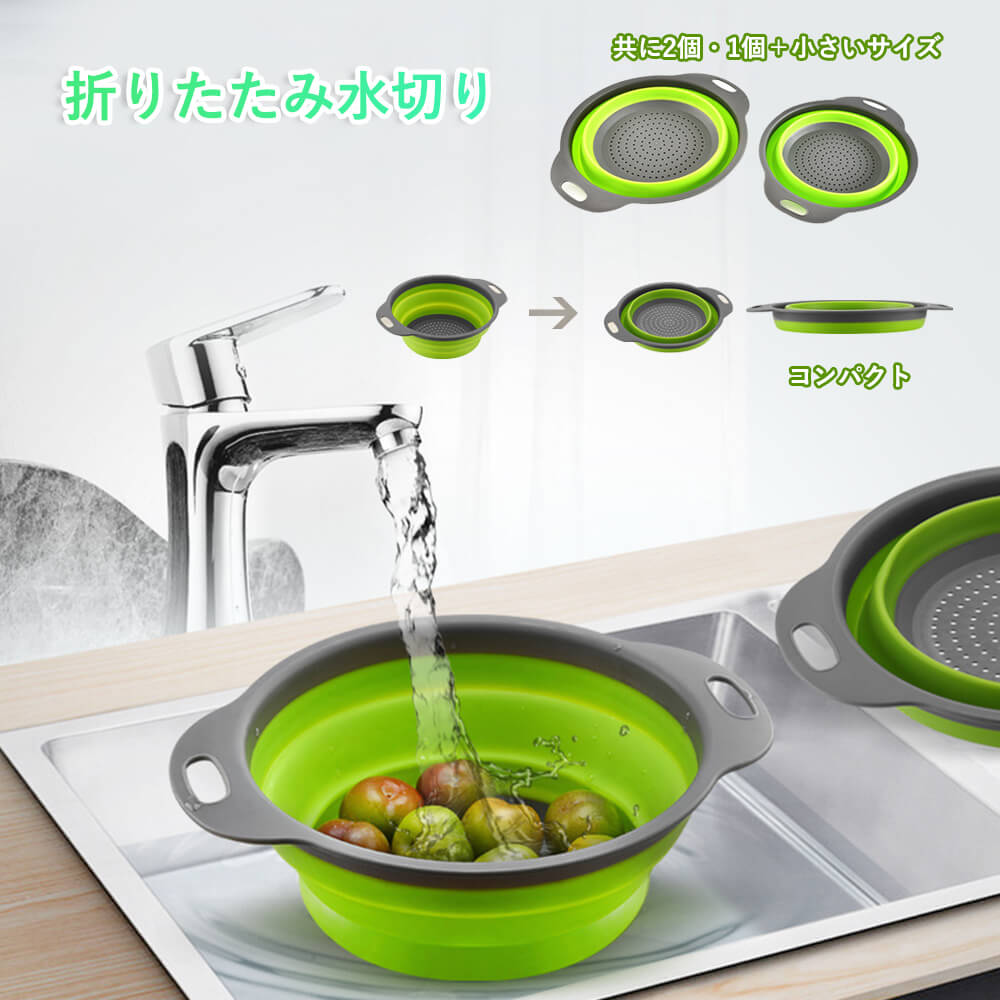 お買い物マラソン【P5倍】【共に2個 1個+小さいサイズ】折りたたみ水切り 水切りバスケット 水切り・・・