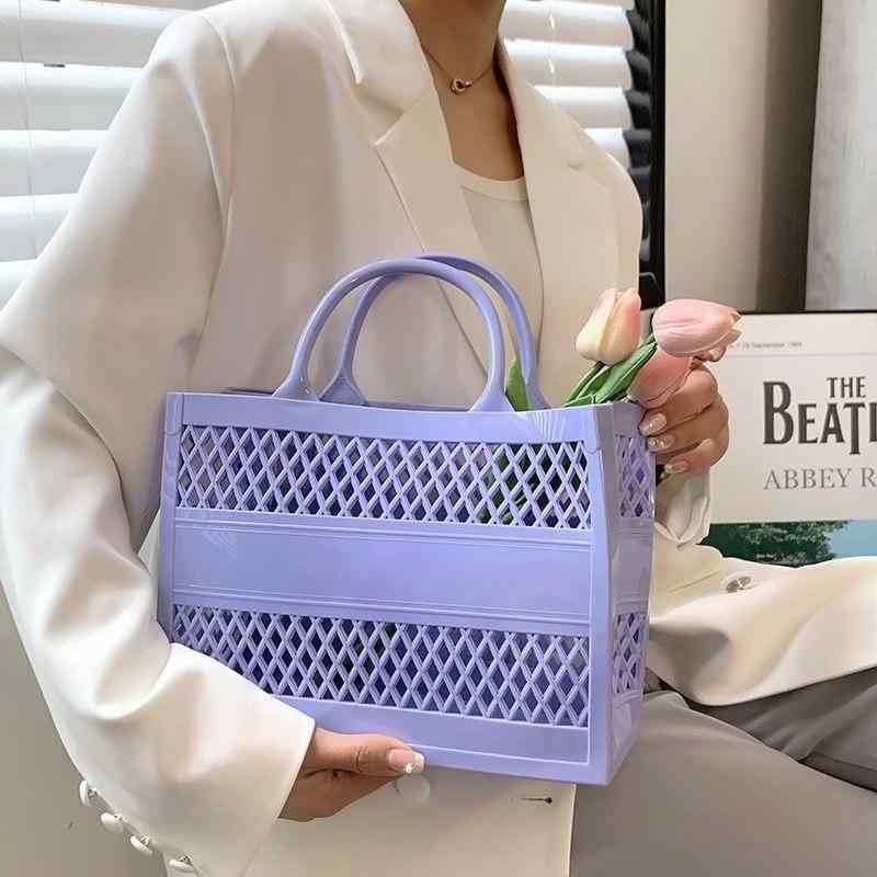 トートバッグ シリコン PVC ゼリー メッシュ くり抜き 手提げ バスケット 防水 軽量 ショッピ・・・