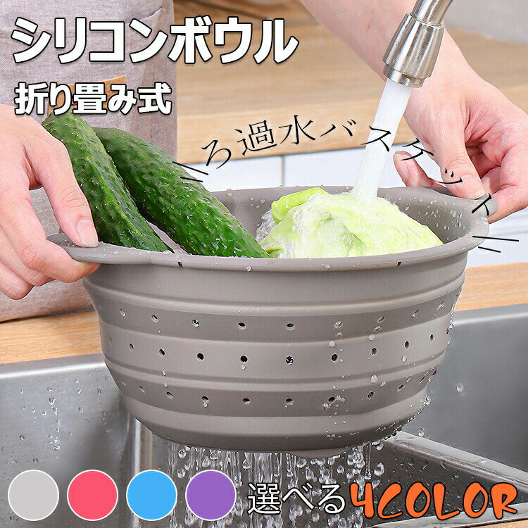 取っ手付き 野菜 水切り おりたたみ式 ザル 伸縮可能な折り畳み式シリコンボウル 折りたたみ ボウル・・・