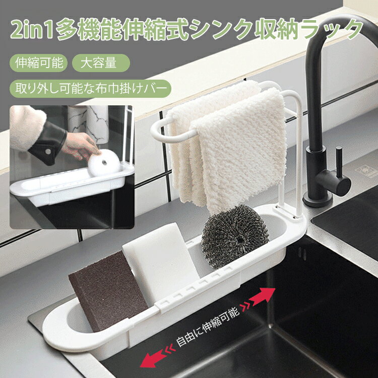 シンク上 水切りラック 伸縮 シンク収納ラック 水切りバスケット 水切りかご 折りたたみ 大容量 コ・・・