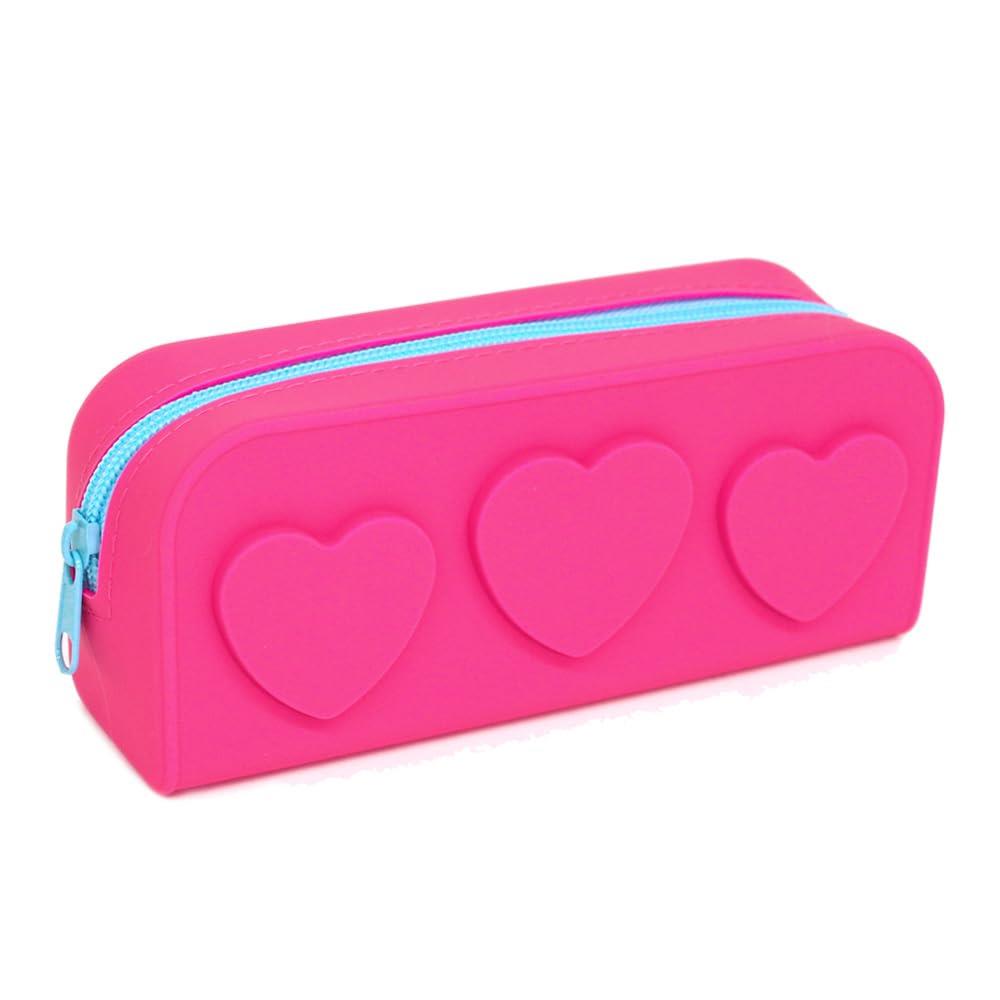 ペンケース 筆箱 ハート シリコン ペンポーチ 立体 可愛い (ピンク)