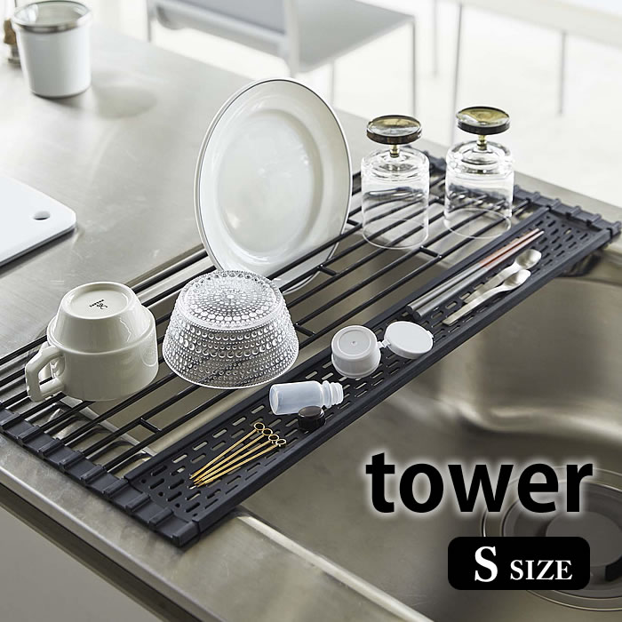 【特典つき】 折り畳み水切りシリコントレー付き S タワー tower 水切りかご 水切りカゴ 水切・・・