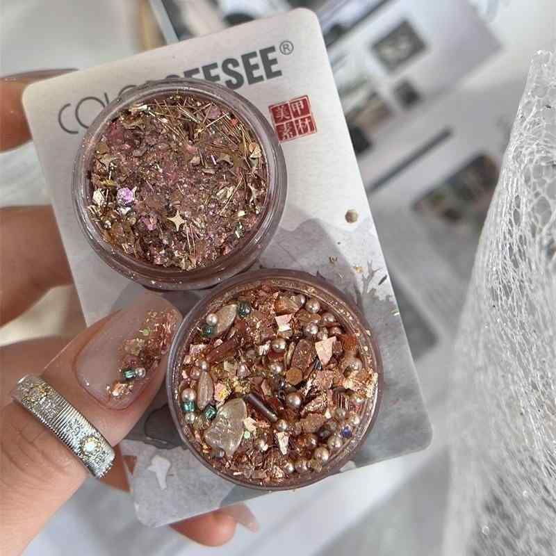 ネイルパーツ 春夏 高級感 美ラメ 焦糖色系 亮片 大理石風 珀拉妮亚光辉 ジェルネイル セルフネイ・・・