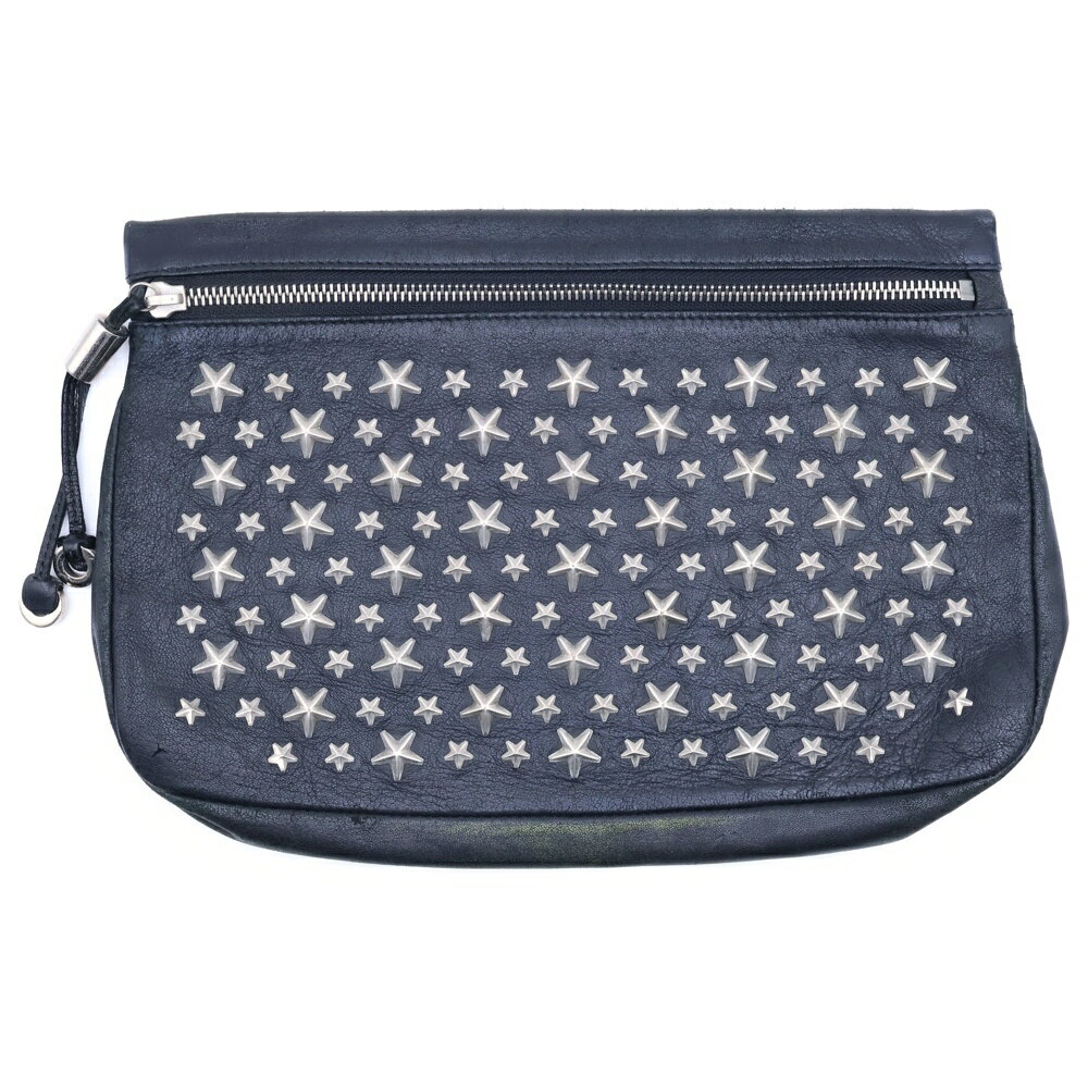 JIMMY CHOO(ジミーチュウ) スタースタッズ レザークラッチバッグ ブラック/シルバー【中古・・・