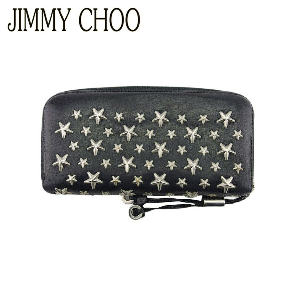 【中古】ジミーチュウ JIMMY CHOO 長財布 ラウンドファスナー スタースタッズ レザー 黒 ・・・