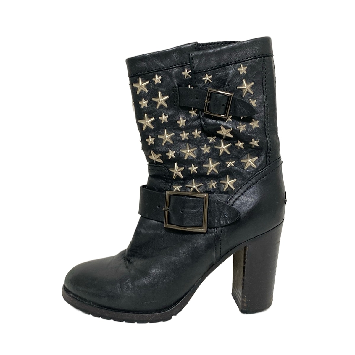 【中古】JIMMY CHOO(ジミーチュウ) ショートブーツ スタースタッズ 黒×シルバー レザー