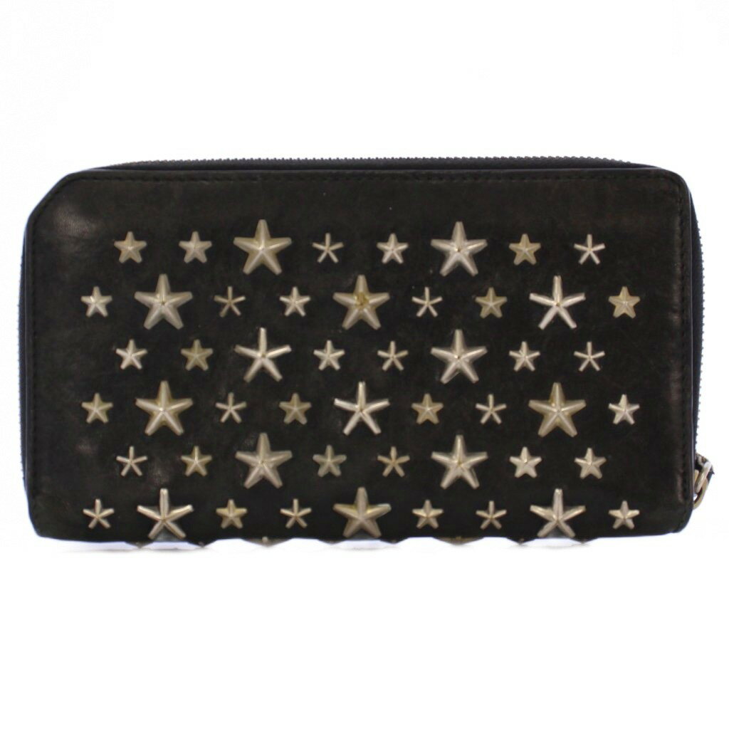【中古】ジミーチュウ JIMMY CHOO 長財布 ラウンドファスナー スタースタッズ レザー 黒 ・・・