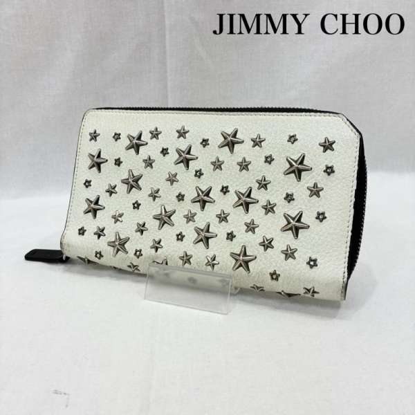ジミーチュウ CARNABY スタースタッズ ラウンドファスナー長財布 white レディース 表記・・・