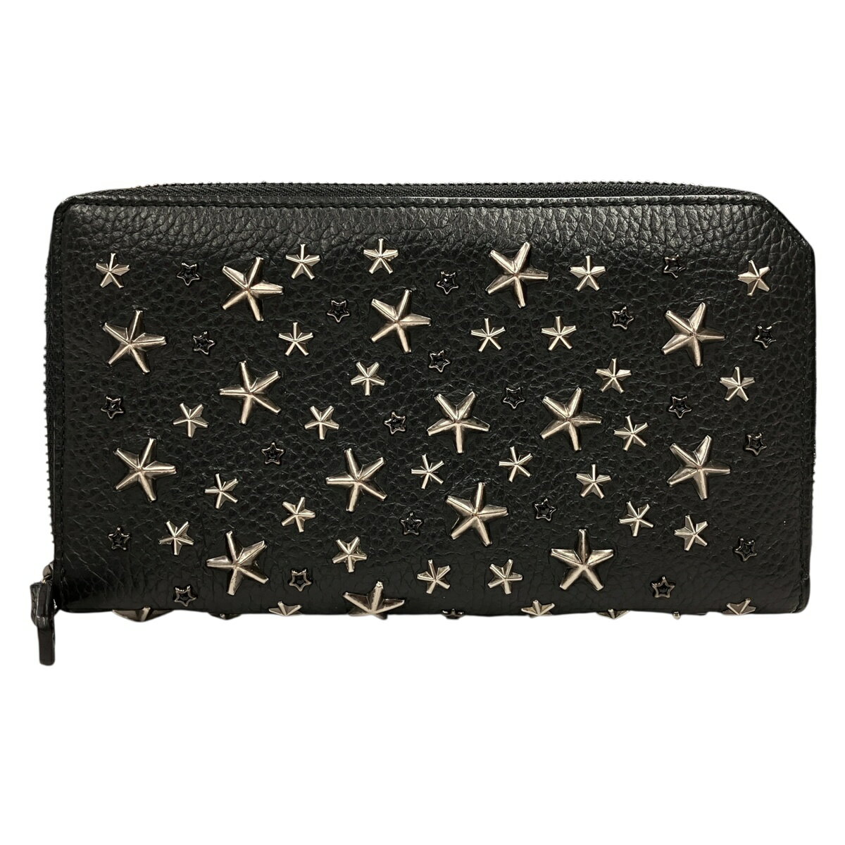 【中古】ジミーチュウ JIMMY CHOO 長財布 ウォレット レザー スタースタッズ ラウンドファ・・・