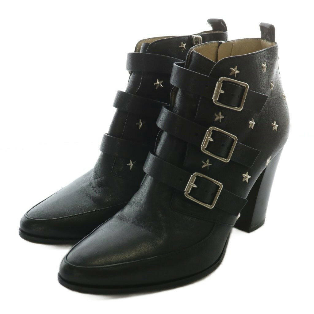 【中古】ジミーチュウ JIMMY CHOO ショートブーツ レザー ポインテッドトゥ チャンキーヒー・・・