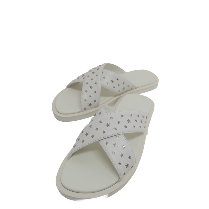 【中古】美品 JIMMY CHOO ジミーチュウ スター スタッズ装飾 クロスストラップ スライド ・・・