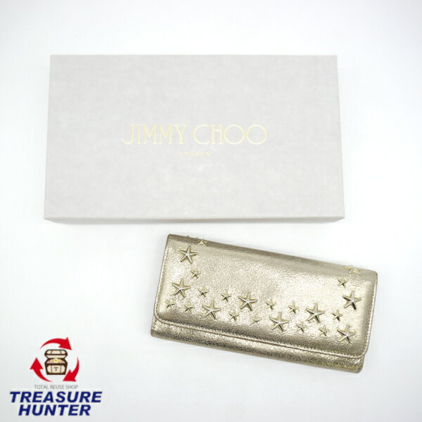 【中古】JIMMY CHOO スタースタッズ フラップ 長財布 折り畳み ゴールド レディース ジミ・・・