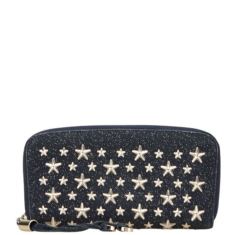 ジミーチュウ スター スタッズ 長財布 ネイビー キャンバス レザー レディース JIMMY CHO・・・