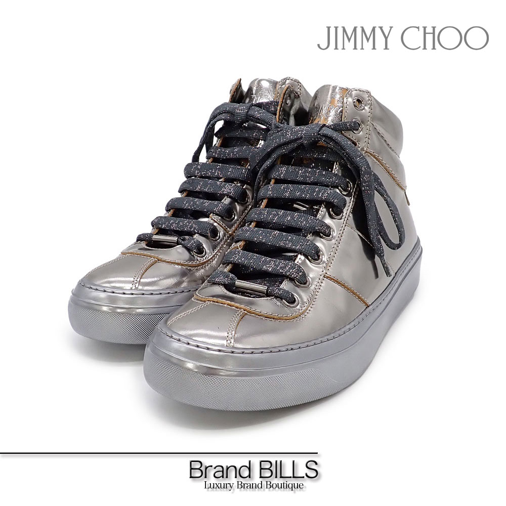 美品・訳アリ JIMMY CHOO ジミーチュウ メタリック ハイカット スニーカー シルバー #3・・・
