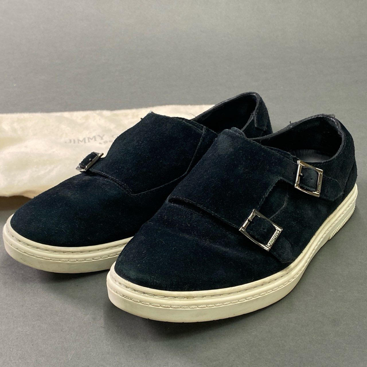 JIMMY CHOO ジミーチュウ ダブルモンク スエードレザー スニーカー 40 ブラック Lea・・・