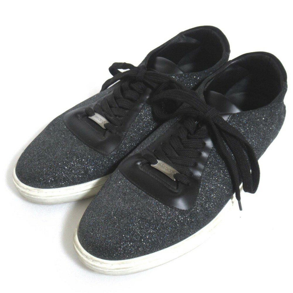【中古】美品 JIMMY CHOO ジミーチュウ ローカット グリッター スニーカー シューズ サイ・・・
