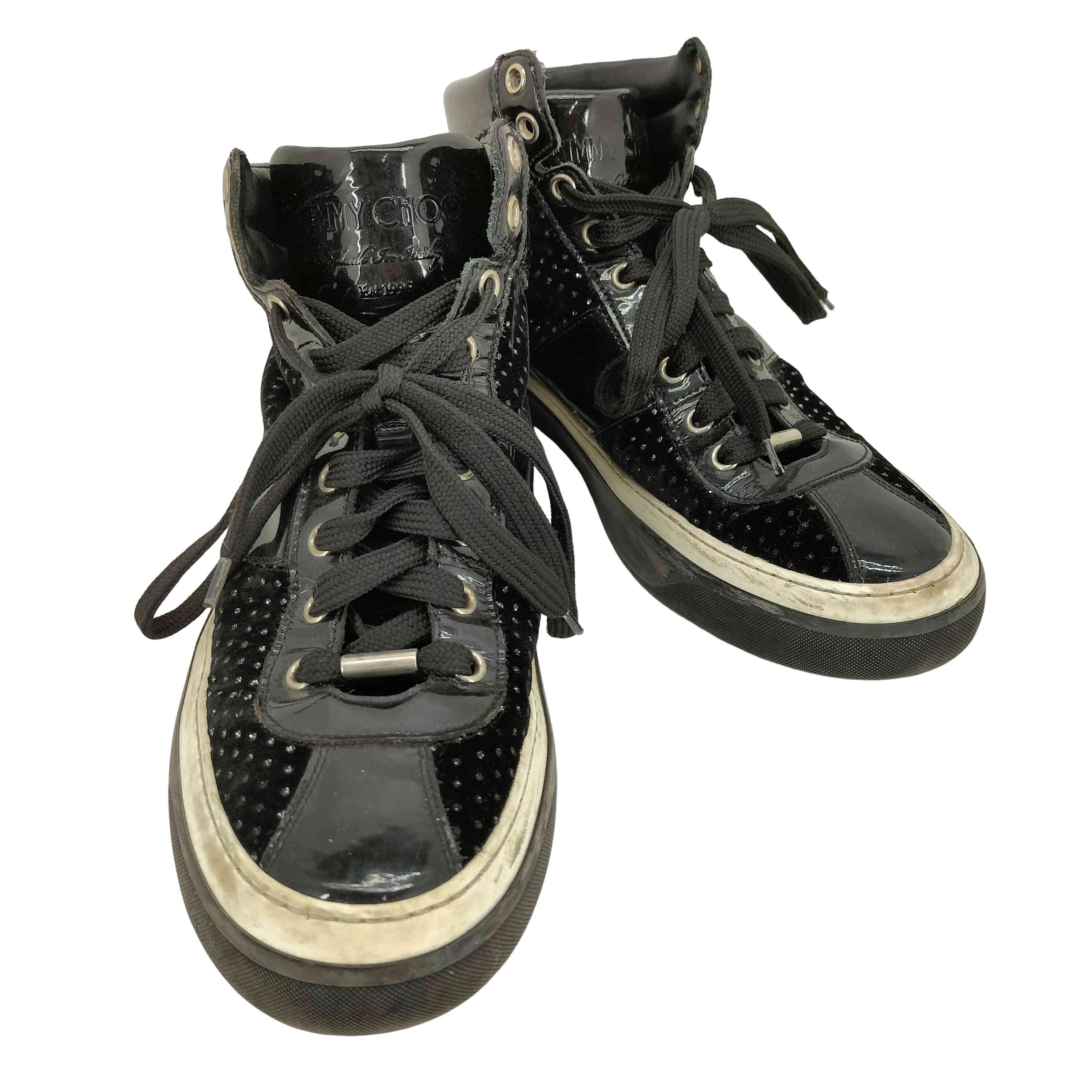 【中古】ジミーチュウ JIMMY CHOO パテント ベルベット ハイカット スニーカー メンズ E・・・