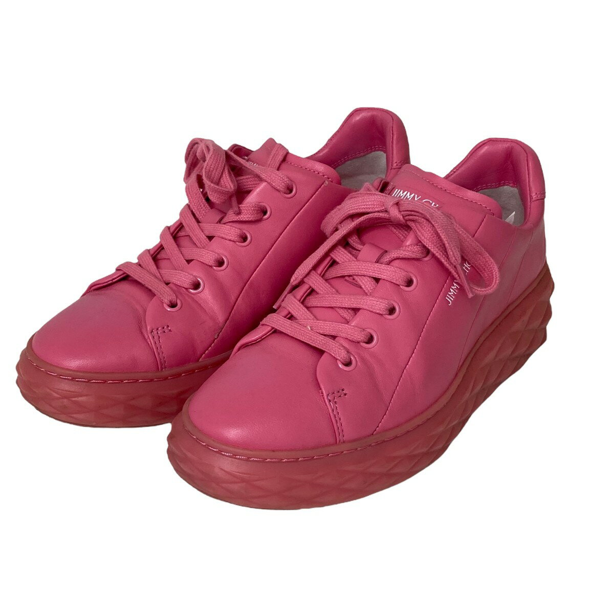 【中古】JIMMY CHOO レザーダイアモンドライトマキシスニーカー ピンク サイズ:37(24.・・・