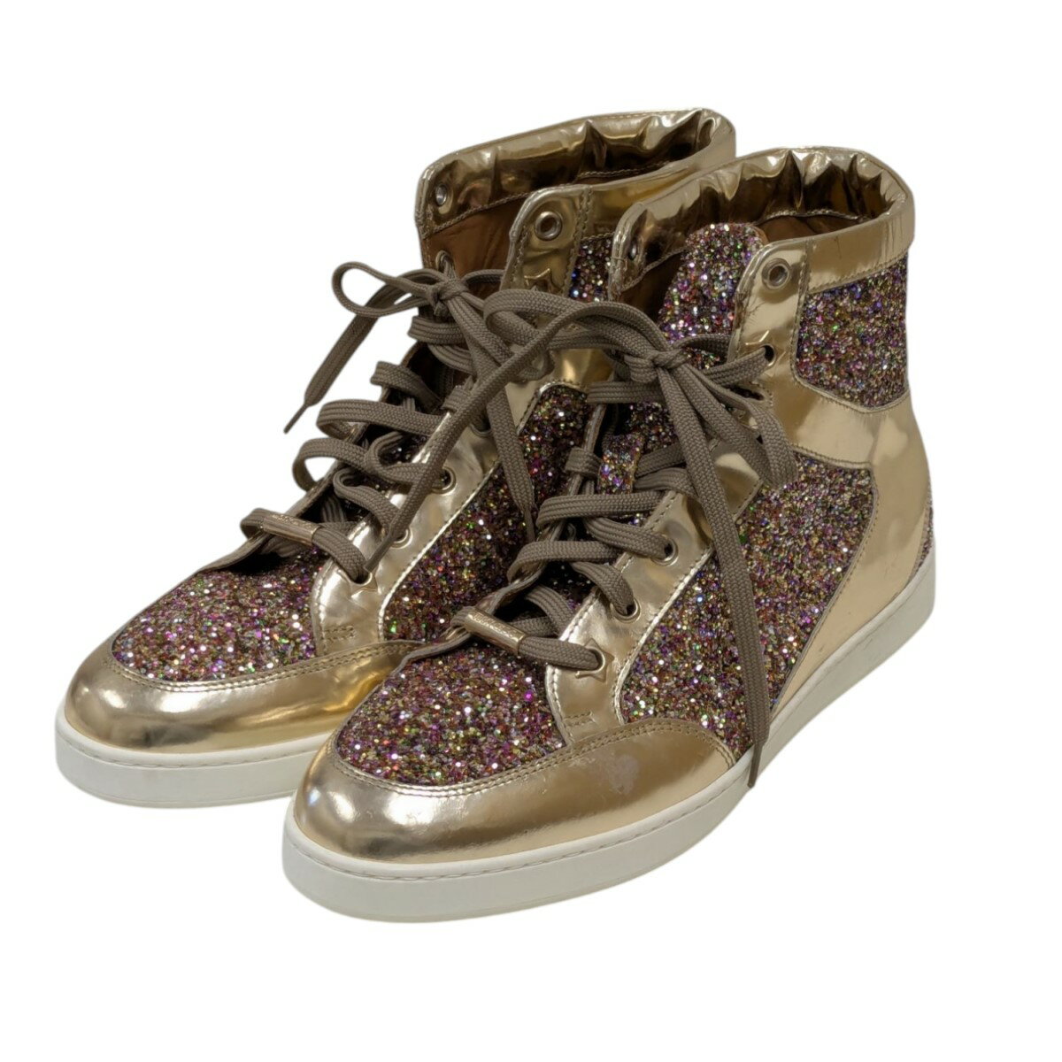 【中古】JIMMY CHOOグリッターハイカットスニーカー ゴールド サイズ:39【価格見直し】