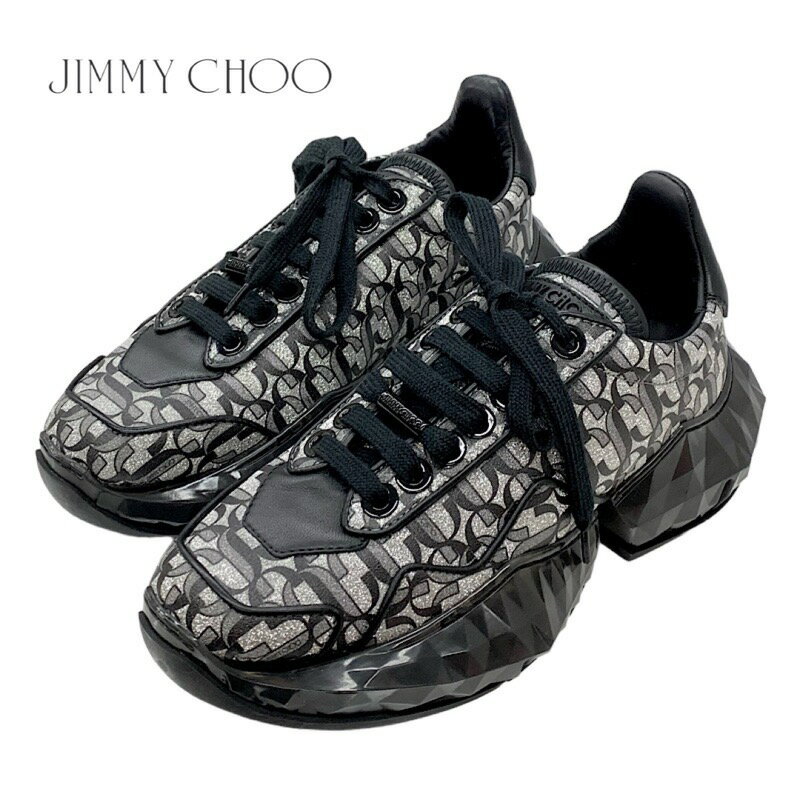 未使用 ジミーチュウ JIMMY CHOO ダイヤモンド スニーカー 靴 シューズ ラメ ロゴ レザ・・・