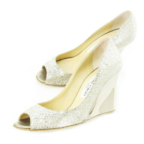 【中古】ジミーチュウ JIMMY CHOO パンプス オープントゥ ウェッジソール メタルプレート ・・・