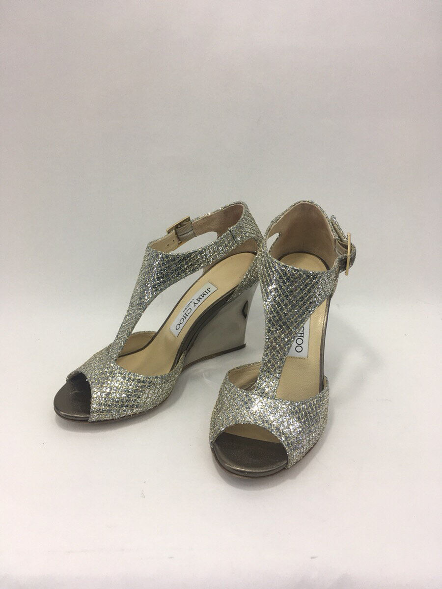 ジミーチュウ(Jimmy Choo) サンダル オープントゥー パンプス 34.5 シルバー パーテ・・・