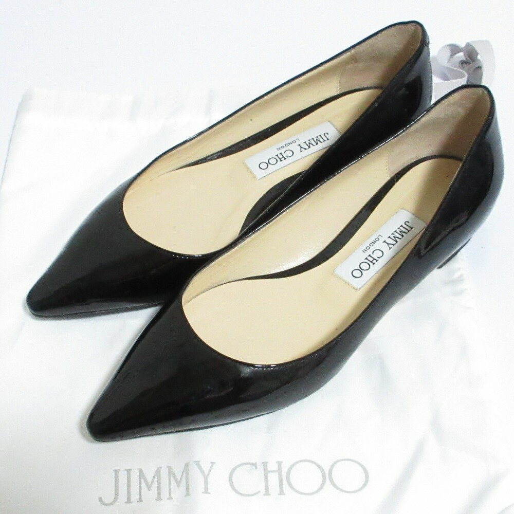 【中古】美品 JIMMY CHOO ジミーチュウ パテントレザー ポインテッドトゥ フラットパンプス・・・
