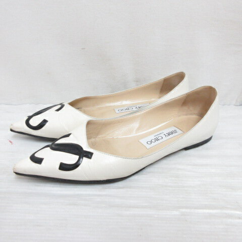【美品】ジミーチュウ/ジミーチュー JIMMY CHOO ロゴ フラットシューズ バレエシューズ パ・・・