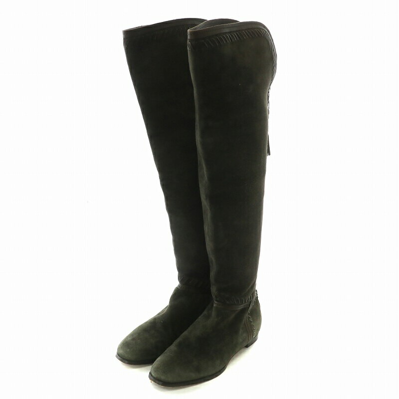 【中古】ジミーチュウ JIMMY CHOO ロングブーツ スエード レザー ラウンドトゥ フリンジ ・・・