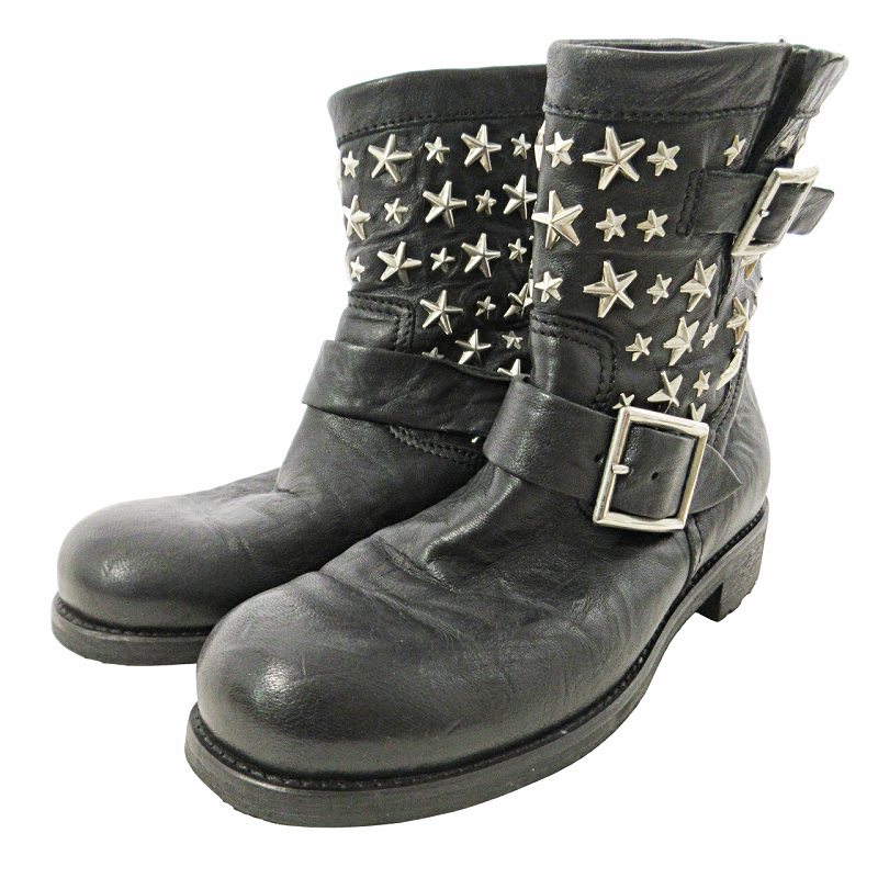 【中古】ジミーチュウ JIMMY CHOO 日本限定 スタースタッズ レザー エンジニア ショート ・・・