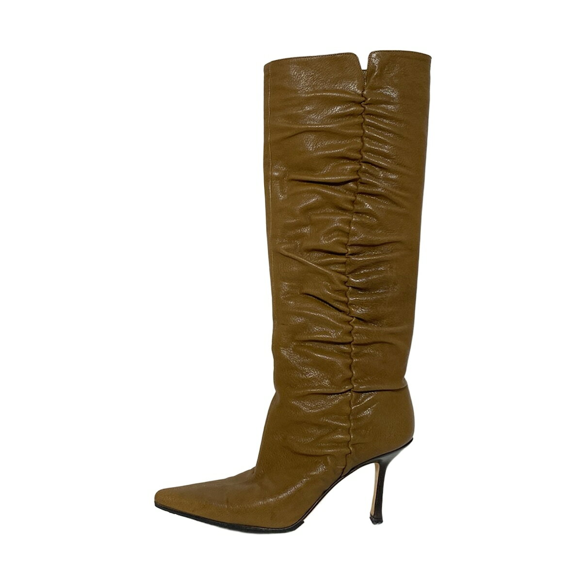 【中古】JIMMY CHOO(ジミーチュウ) ロングブーツ アウトソール張替済 ブラウン レザー
