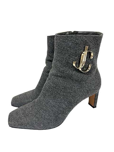 【中古】JIMMY CHOO ジミーチュウ 靴 ショートブーツ ウール グレー レディース JCロゴ・・・