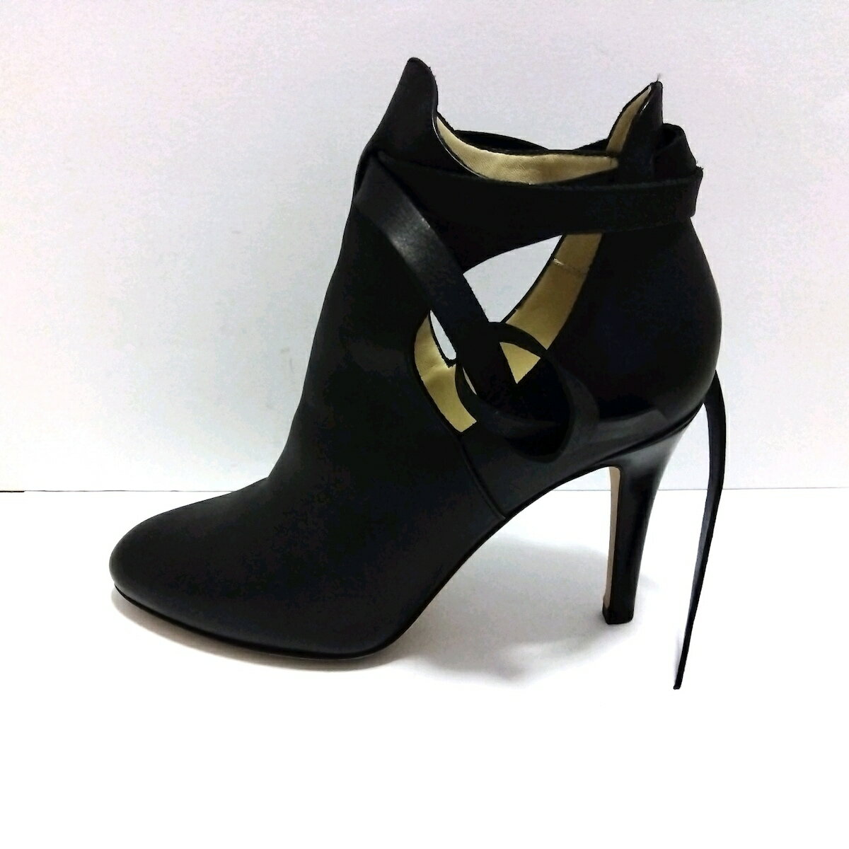 【中古】JIMMY CHOO(ジミーチュウ) マリナ ショートブーツ 黒 レザー