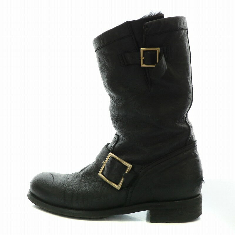 【中古】ジミーチュウ JIMMY CHOO エンジニアブーツ ショートブーツ レザー ローヒール タ・・・