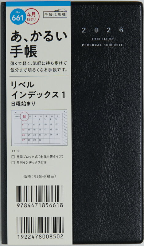 TAKAHASHI 高橋書店 2026 4月始まり 手帳 A6 No.661 リベル インデックス ・・・